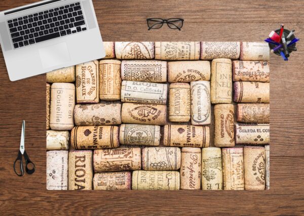 Charakter & Struktur – Schreibtischunterlage mit Korkenstapel-Motiv