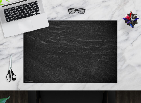 Ein stylisches Upgrade für deinen Schreibtisch. Diese moderne Vinyl-Schreibunterlage in einer Schieferoptik in Natur, passt zu (fast) allen Oberflächen und macht deinen Schreibtisch zu einem tollen Hingucker.