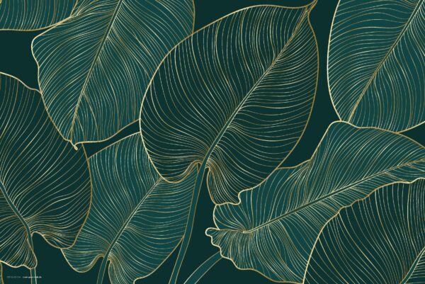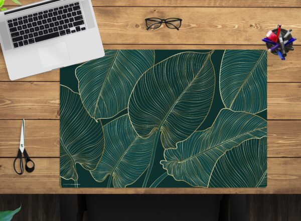 Exotik trifft Eleganz – Schreibtischunterlage mit tropischen Blättern und goldenen Adern