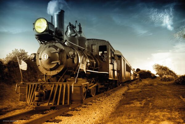 Das beeindruckende Motiv zeigt eine klassische schwarze Lokomotive in voller Fahrt – ein Symbol für Technik, Abenteuer und die große Freiheit auf Schienen. Perfekt für Eisenbahn-Fans und kleine Lokführer mit großen Träumen.