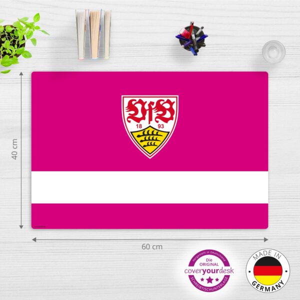 VfB Stuttgart – Brustring weiß mit Logo – Schreibtischunterlage in pink