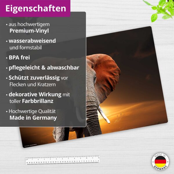 Schöne und nützliche Schreibtischunterlage für Kinder mit Elefant in der Steppe. Sie ist zugleich auch eine Lernunterlage!