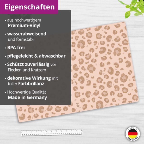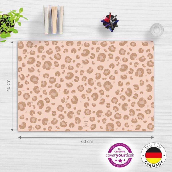 Diese Leopard rosa Schreibtischunterlage überzeugt mit einem angesagten Leopardenfell-Muster auf rosafarbenem Hintergrund. Das Design ist bewusst abstrakt und dekorativ gehalten und zeigt kein realistisches Tiermotiv, sondern ein modernes Animal-Print-Muster, das Eleganz und Trendbewusstsein vereint.