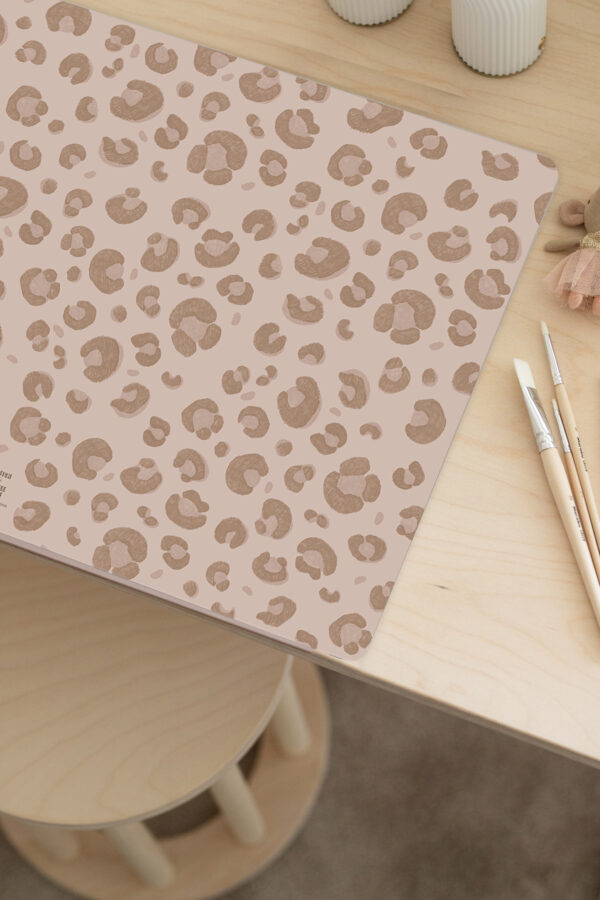 Leopard Rosa Schreibtischunterlage – Leopardenfell Muster mit rosa Hintergrund