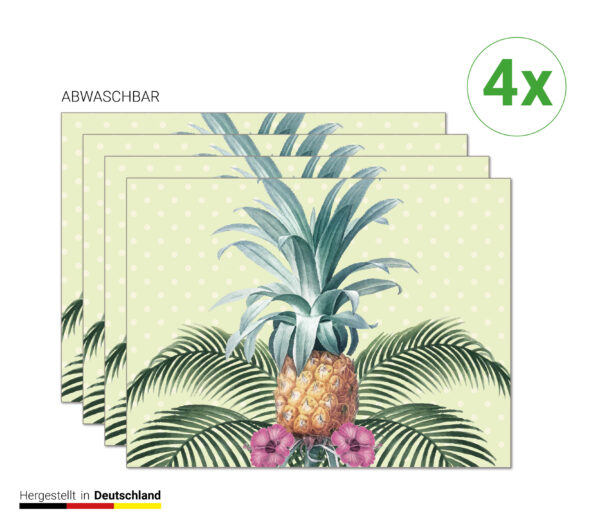 Ananas mit Palmenblätter – Tischsets | Platzsets aus Premium-Vinyl 40 x 30 cm – 4 Stück