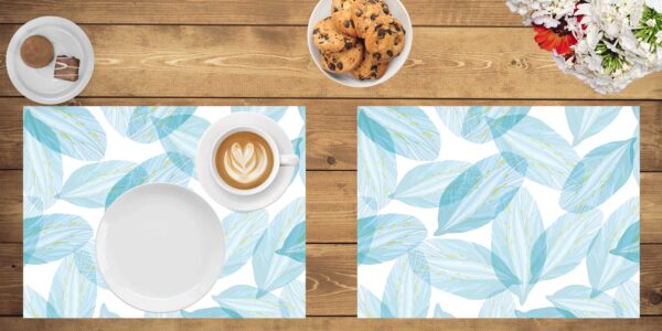 Blaue Blätter – Tischsets | Platzsets aus Premium-Vinyl 40 x 30 cm – 4 Stück – abwischbar