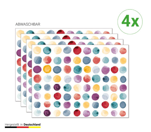 Schreibe die erste Rezension für „Bunte Punkte Muster – Tischsets | Platzsets aus Premium-Vinyl 40 x 30 cm – 4 Stück“