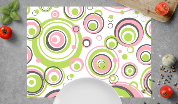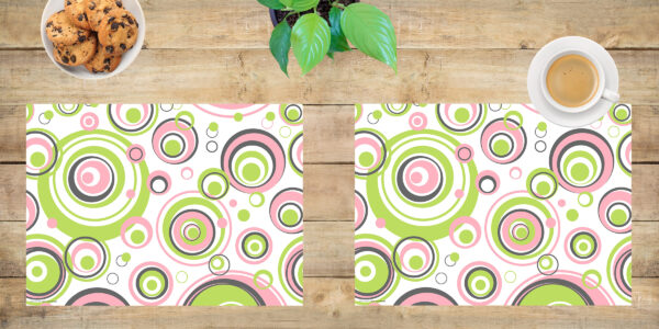 Grüne-Rosa Kreise – Tischsets | Platzsets aus Premium-Vinyl 44 x 32 cm – 4 Stück