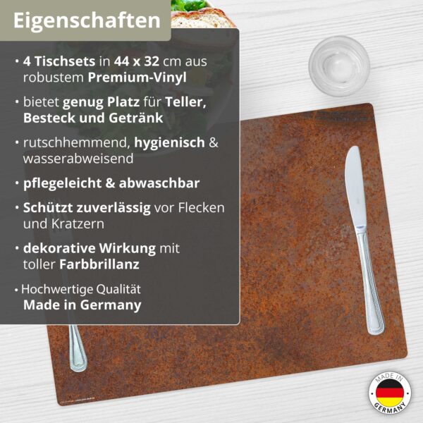 Stahlplatte Rost Optik | Platzsets aus Premium-Vinyl 44 x 32 cm – 4 Stück