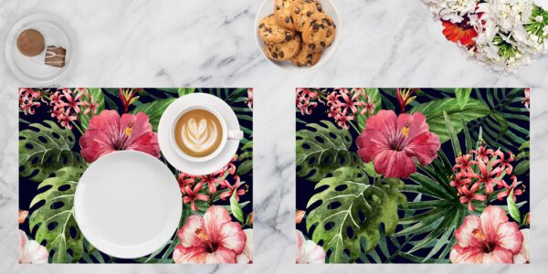 Tropische Hibiskus Blüten – Tischset | Platzsets aus Premium-Vinyl 40 x 30 cm – 4 Stück – abwischbar
