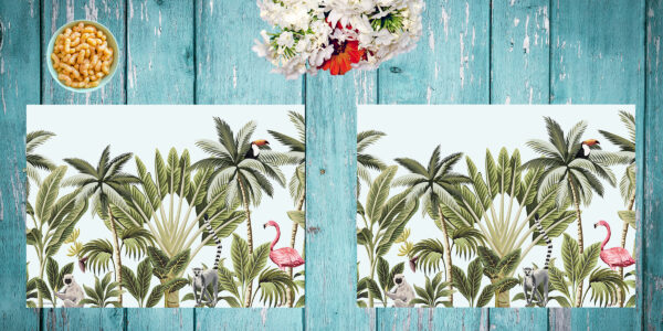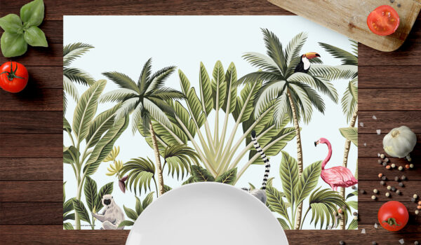 Tropische Palmen und exotische Tiere – Tischsets | Platzsets aus Premium-Vinyl 44 x 32 cm – 4 Stück