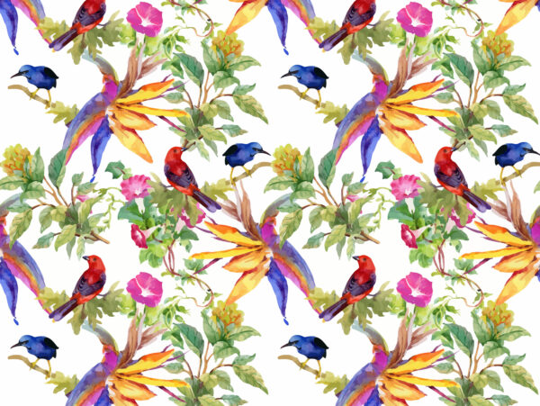 Tropische Zweige mit bunten Vögeln – Tischsets | Platzsets aus Premium-Vinyl 40 x 30 cm – 4 Stück